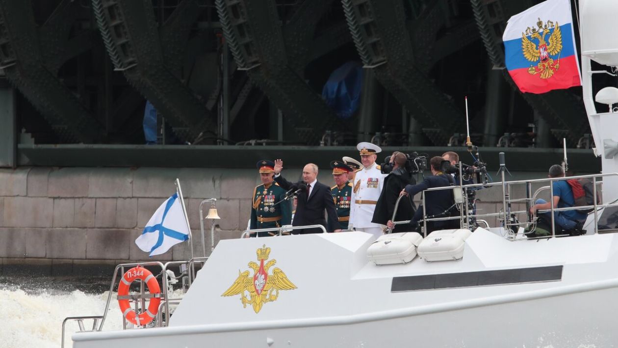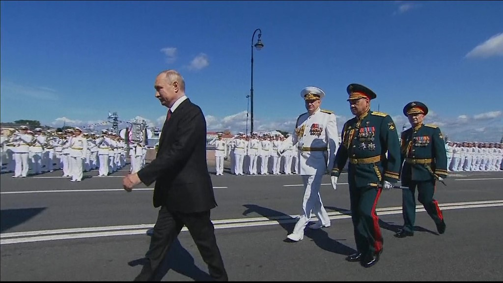 当地时间7月30日,俄罗斯总统普京出席2023年俄罗斯海军节阅兵活动。图源:英国天空新闻网