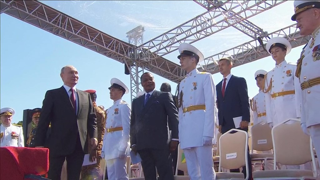 每年7月的最后一个星期日是俄罗斯海军节。据稍早前报道,除普京外,非洲多国政要抵达海军节阅兵现场,检阅参加庆祝活动的舰船和官兵。与往年相比,今年俄罗斯国防部没有提前公布参加阅兵的具体舰船和人数。根据总台记者在现场了解到的情况,共计有3000名军人和45艘来自俄罗斯海军各舰队、俄罗斯联邦安全局、俄罗斯紧急情况部的舰船在涅瓦河及喀琅施塔得海军基地接受检阅。