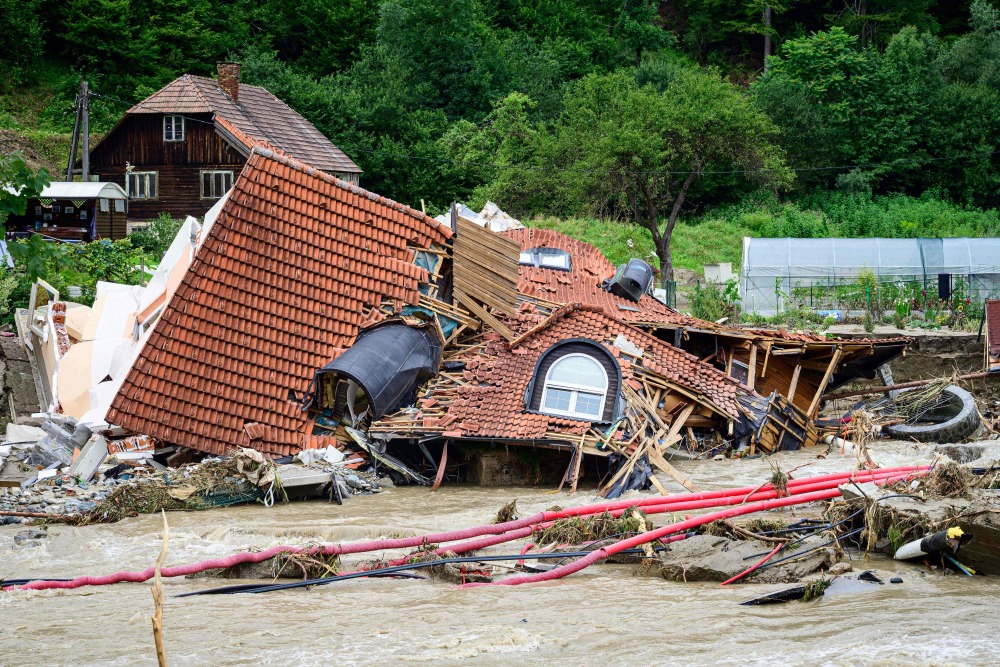 这是8月9日在斯洛文尼亚普雷瓦列拍摄的在洪水中坍塌的房屋。新华社/法新