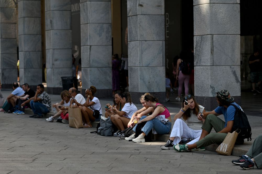 8月21日,游客在意大利米兰的一片阴凉处休息。新华社/法新