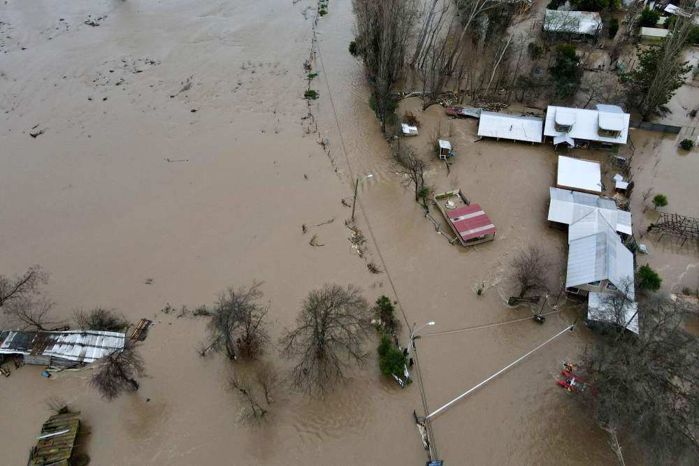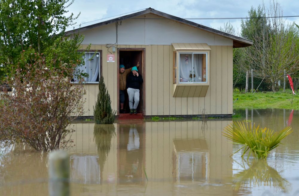 8月21日,在智利卡夫雷罗,房屋被洪水包围。新华社/法新