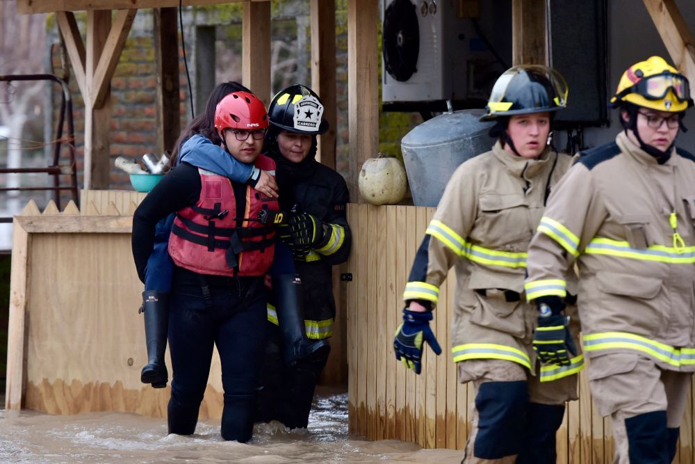 8月21日,在智利卡夫雷罗,消防人员救援被洪水困住的居民。新华社/法新