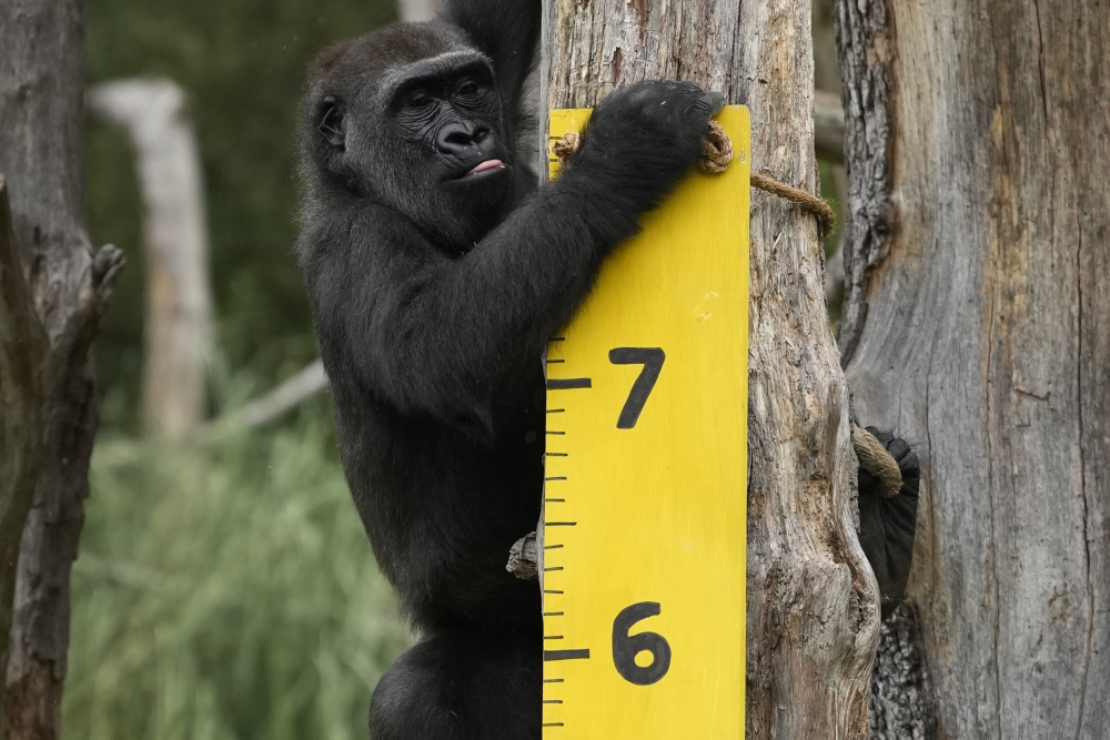 8月24日,在英国伦敦动物园,一只西部低地大猩猩接受体检。新华社/美联