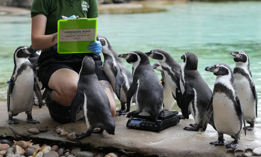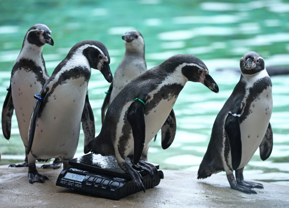 8月24日,在英国伦敦动物园,洪堡企鹅接受体检。新华社/美联