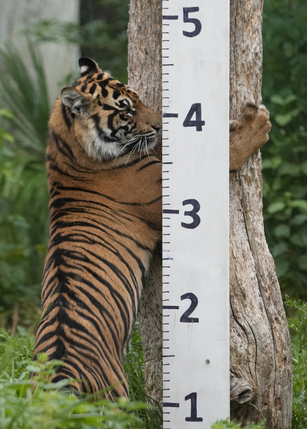 8月24日,在英国伦敦动物园,一只苏门答腊虎接受体检。新华社/美联