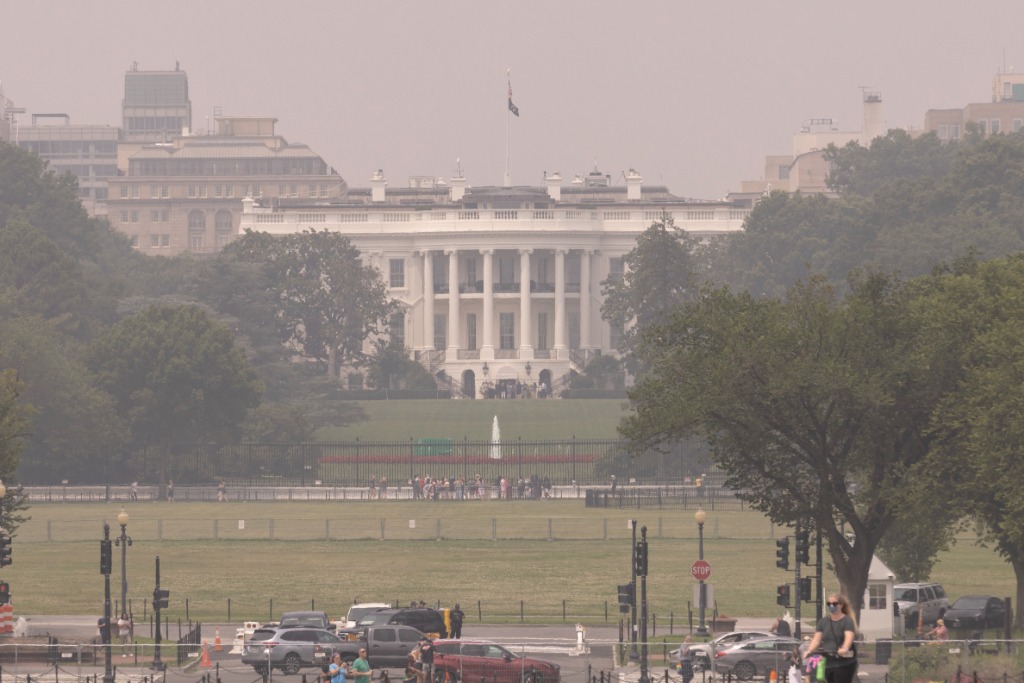 6月29日,在美国首都华盛顿,白宫笼罩在烟雾中。新华社发(亚伦摄)
