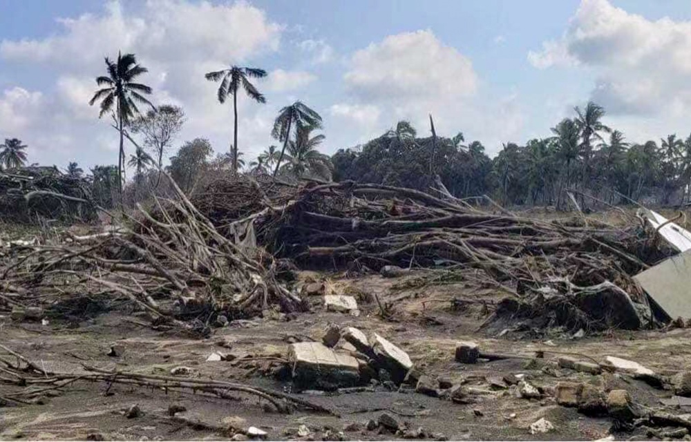 这是2022年1月19日拍摄的海啸过后的汤加首都努库阿洛法郊外。新华社发(汤加哈阿塔富度假村供图)