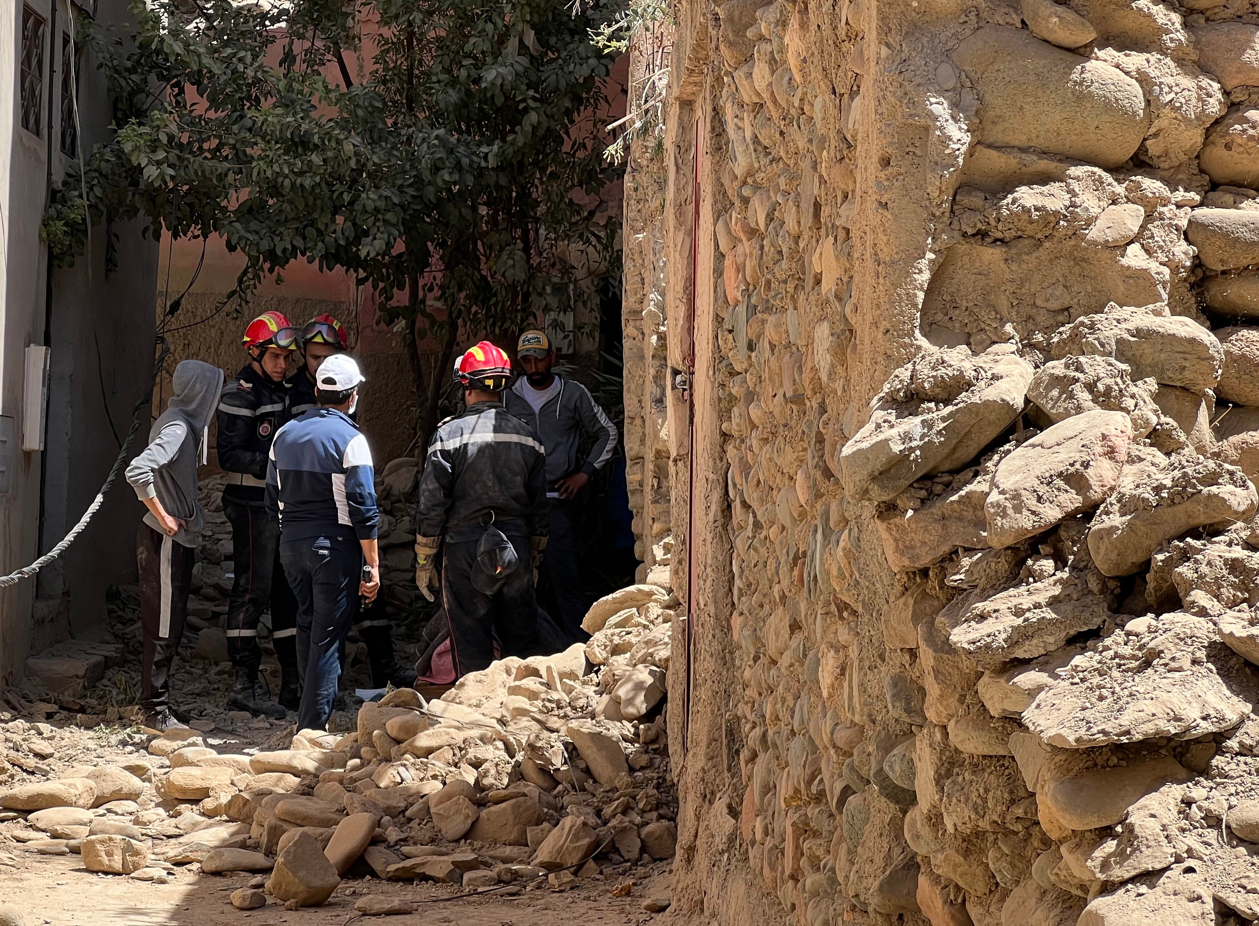 9月10日,救援人员在摩洛哥震中附近的艾米兹米兹村参与搜救工作。 新华社记者 王东震 摄