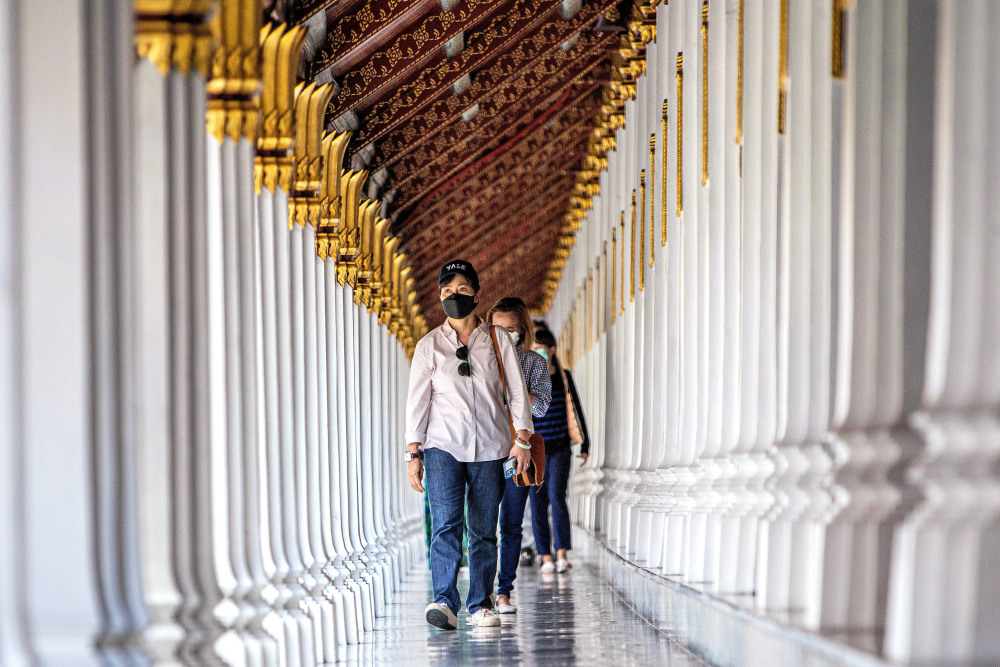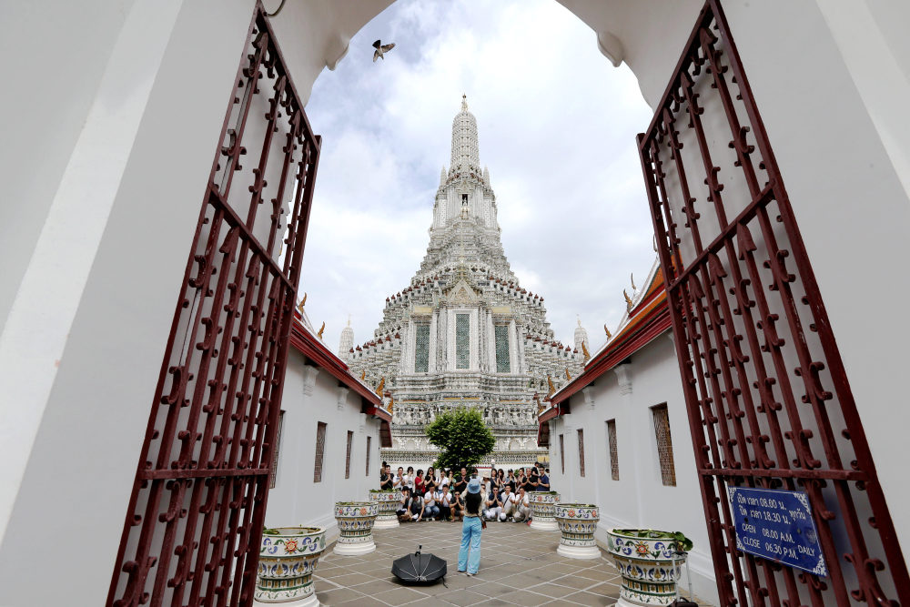 这是6月16日,游客在泰国曼谷郑王庙景区游览。新华社记者 王腾 摄
