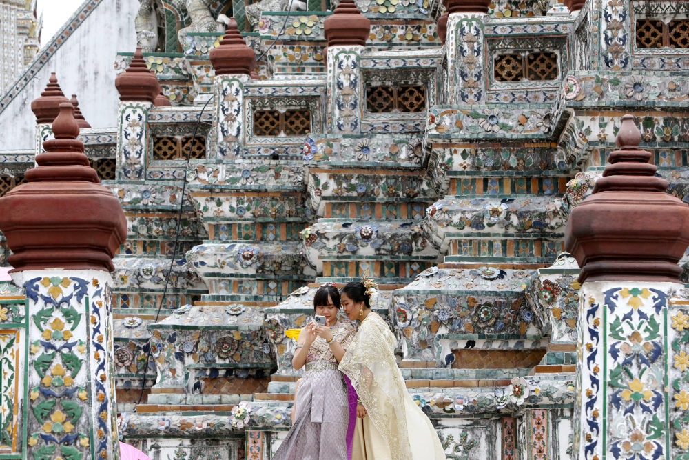 这是6月16日,游客在泰国曼谷郑王庙景区拍照。新华社记者 王腾 摄