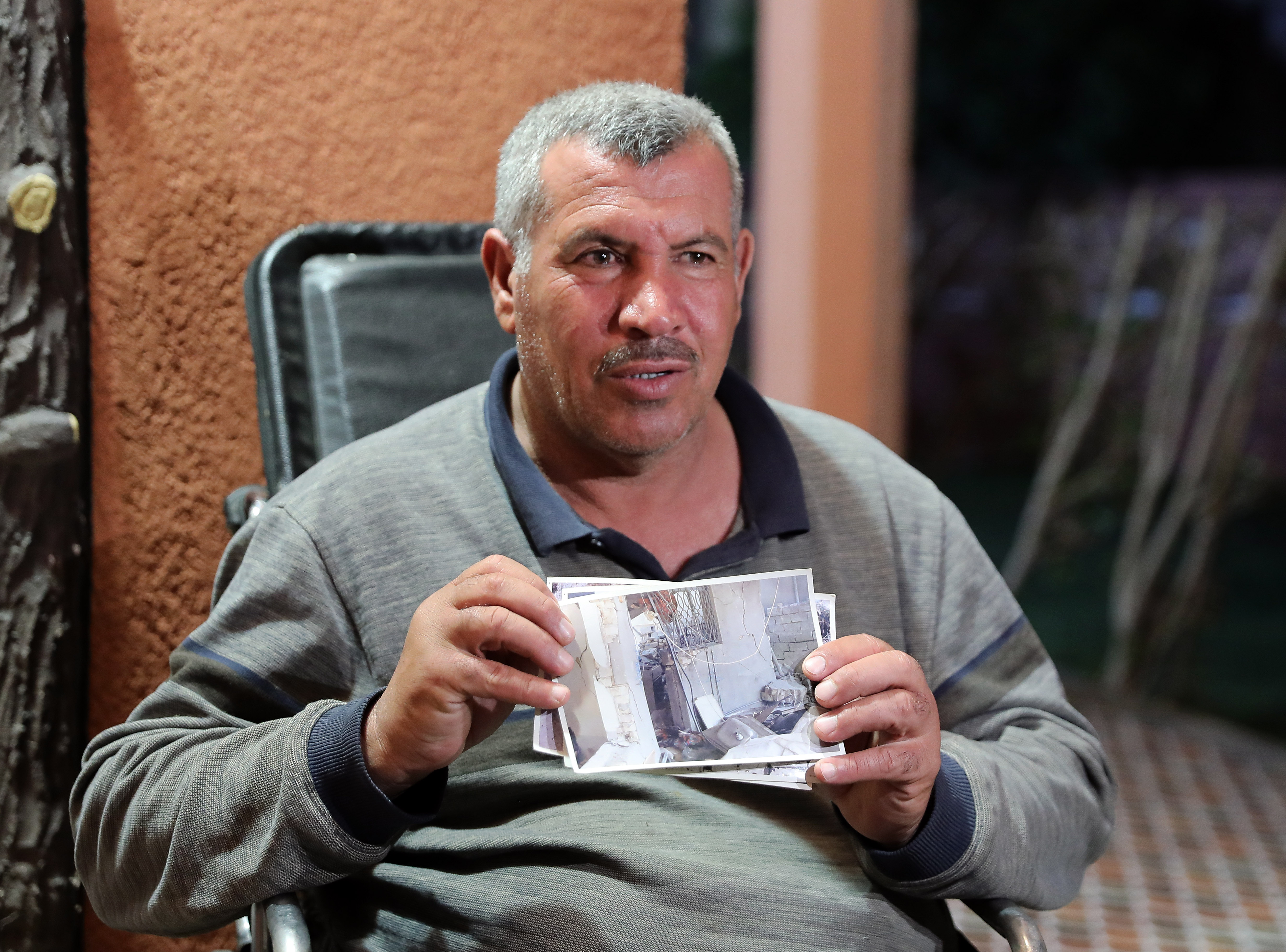 2023年3月6日,在伊拉克北部萨拉赫丁省祖卢耶镇,阿卜杜拉·马哈茂德·易卜拉欣展示自己家被美军炸毁后的照片。新华社记者王东震摄