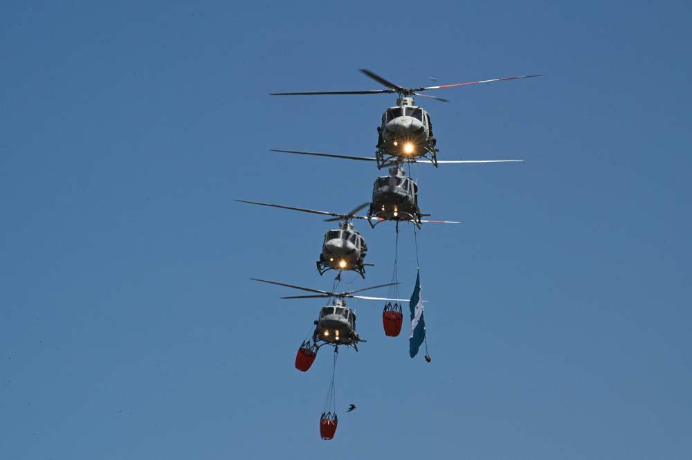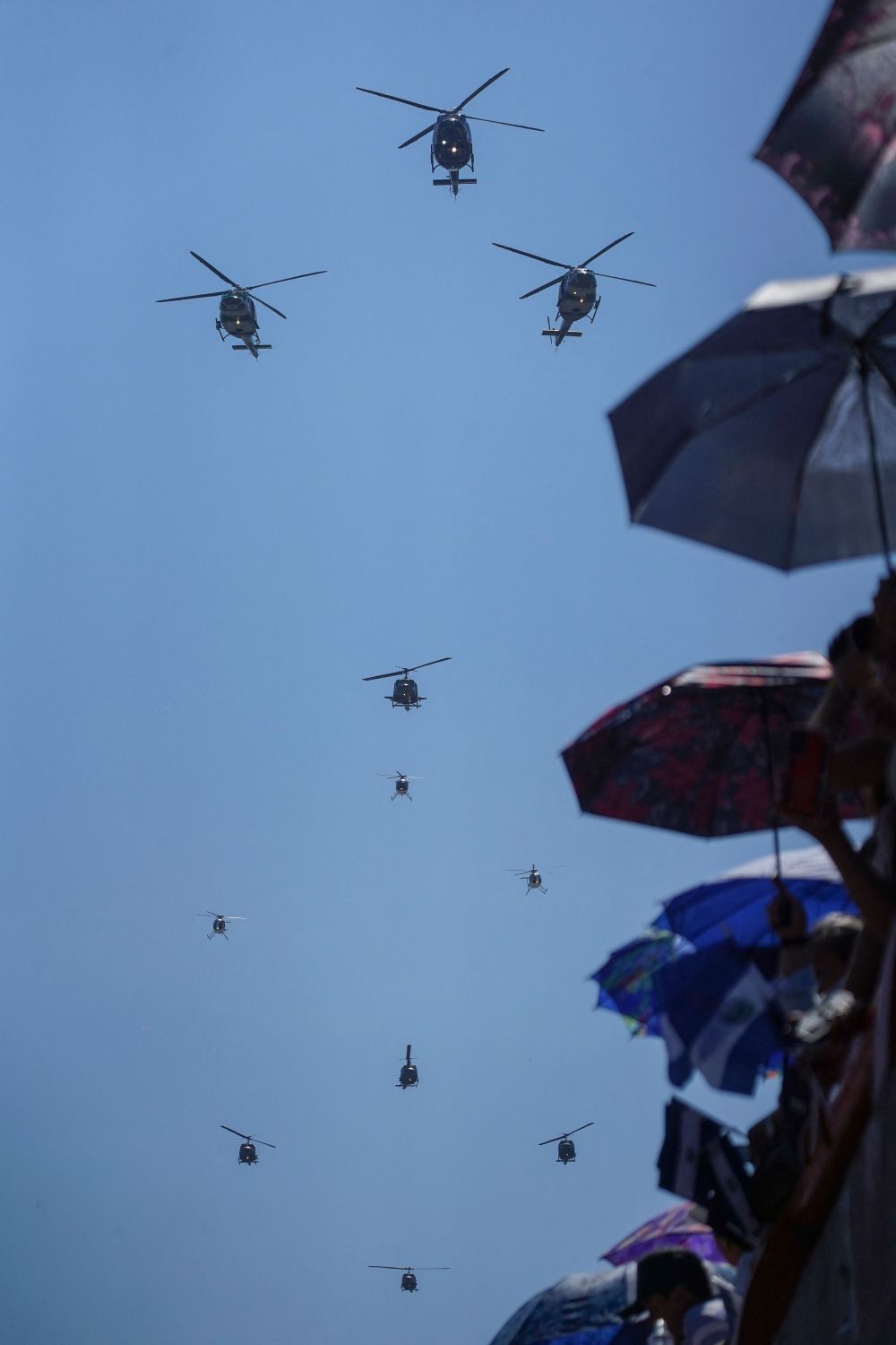 9月15日,直升机编队在萨尔瓦多首都圣萨尔瓦多参加独立日庆祝仪式。新华社/法新