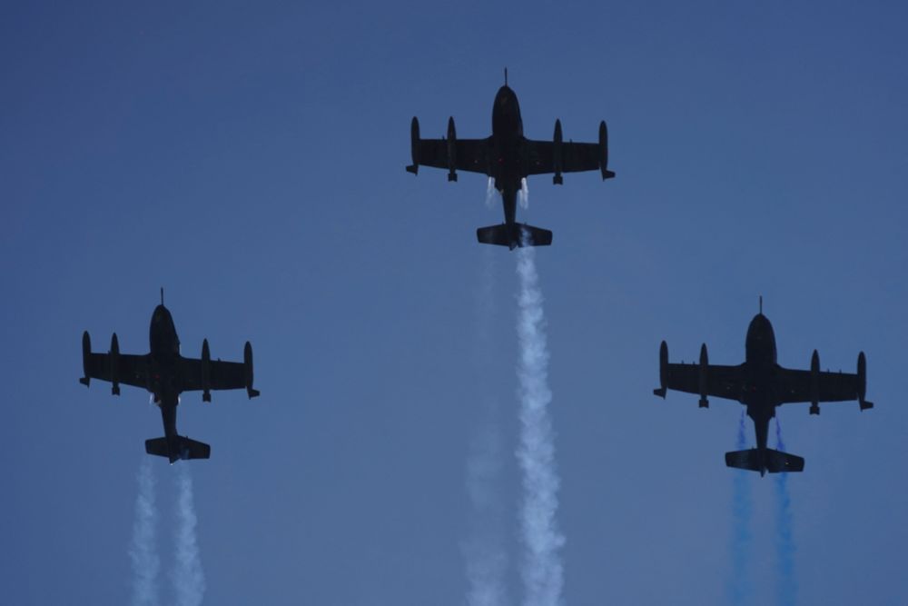 9月15日,飞机编队在萨尔瓦多首都圣萨尔瓦多参加独立日庆祝仪式。新华社/法新