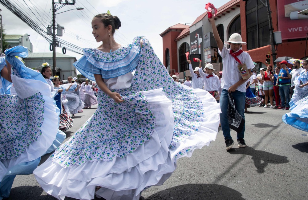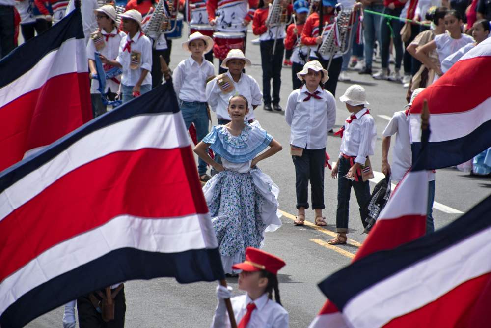 9月15日,在哥斯达黎加首都圣何塞,学生参加庆祝独立日的游行活动。新华社/法新