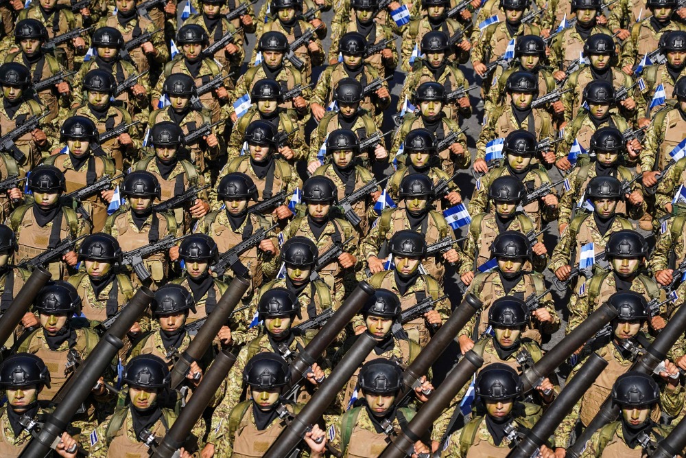 9月15日,在萨尔瓦多首都圣萨尔瓦多,士兵参加独立日庆祝仪式。新华社/法新