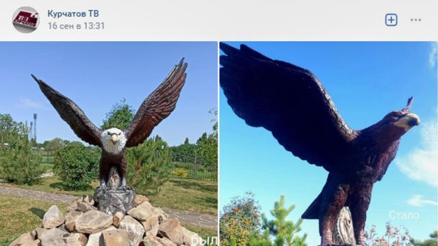 俄罗斯一座白头鹰雕像引争议(图:社交平台)