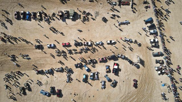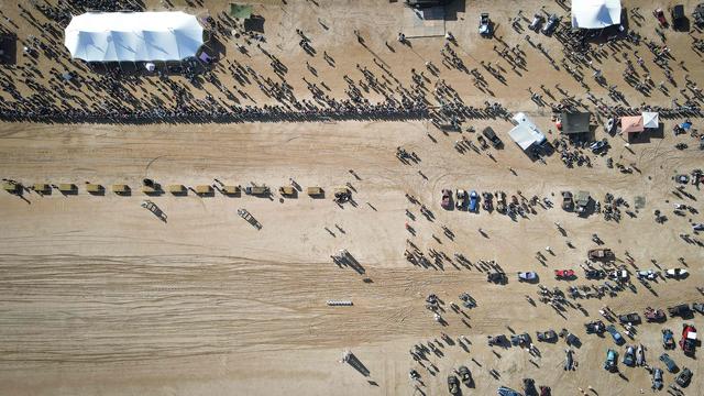 这是9月23日在法国诺曼底地区的乌伊斯特勒昂拍摄的沙滩赛车大会现场(无人机照片)。新华社/法新