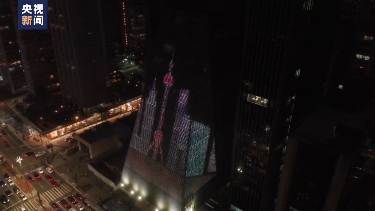 总台记者倪天颖:我现在是在巴西最大城市圣保罗最重要的经济和金融中枢保利斯塔大街上。为了庆祝中华人民共和国成立74周年,在我身后的地标性建筑上,正在上演中国国旗灯光秀。