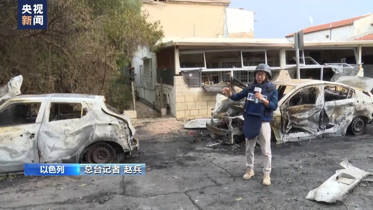 总台记者赵兵:我现在所在的位置就是不久前阿什凯隆遭受火箭弹袭击的地方。在我们赶来以后,袭击引发的大火已经被当地居民扑灭了。但是现在空气中还弥漫着非常浓重的燃烧物的味道,并且在城市的上空还频繁地传出爆炸的声音。