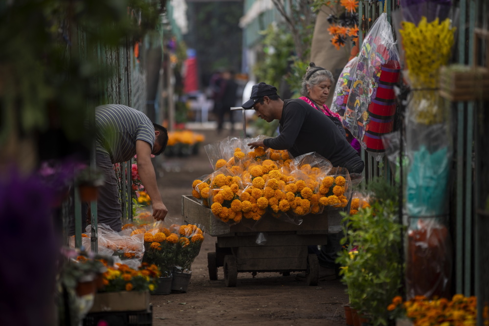 10月17日,商贩在墨西哥首都墨西哥城霍奇米尔科出售万寿菊。新华社/欧新