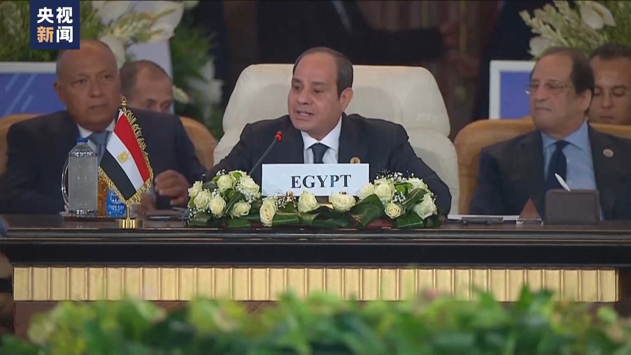 埃及总统塞西在峰会开幕致辞中说,埃及拒绝将巴勒斯坦人驱逐到埃及土地上,解决巴勒斯坦问题的唯一办法是赋予巴勒斯坦人合法生活在独立国家的权利。他呼吁国际社会共同努力,制定恢复中东和平进程的路线图,结束当前的人道主义悲剧。