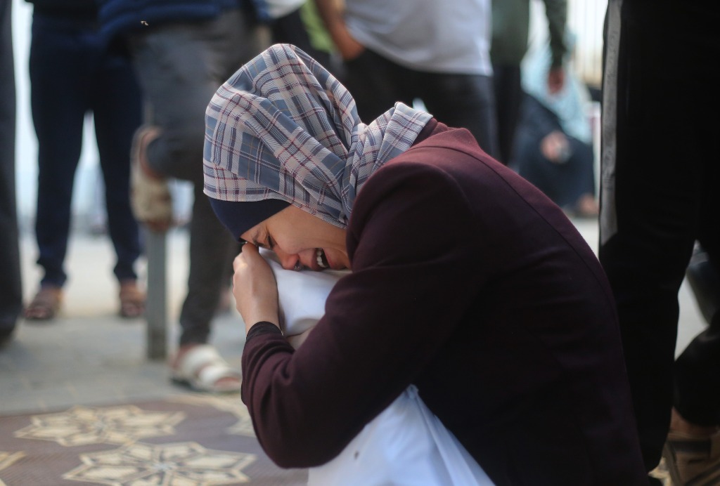 10月21日,在加沙地带南部地区,一名女子为逝去的亲友哭泣。新华社发(哈立德·奥马尔摄)