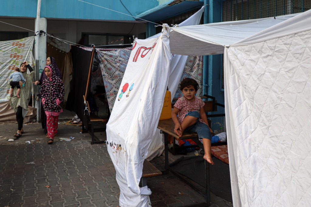 这是10月23日在加沙地带南部联合国近东巴勒斯坦难民救济和工程处一所附属学校内拍摄的流离失所的民众。新华社发(里泽克·阿卜杜勒贾瓦德摄)