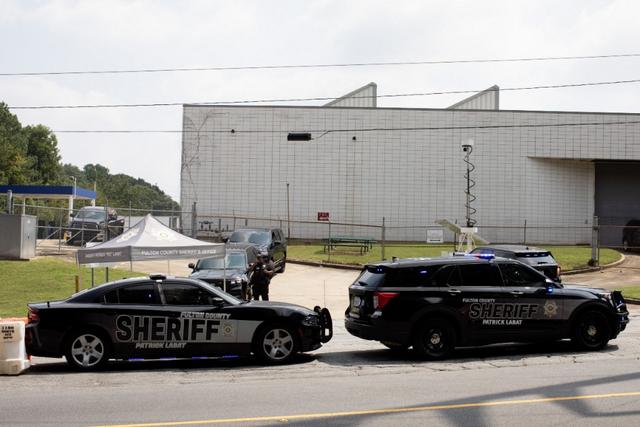 8月24日,警察在美国佐治亚州亚特兰大市富尔顿县拘留所外警戒。新华社发(马修·彭德里摄)