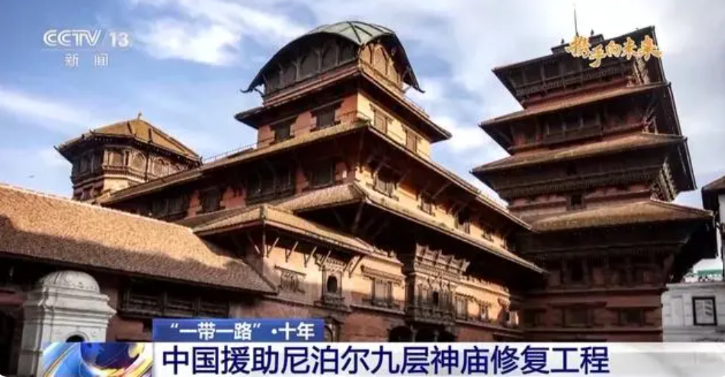 尼泊尔地标建筑九层神庙古迹,是当地最古老的王宫,2015年在8.1级地震里粉碎坍塌。中国政府迅速展开援助行动,国家文物局选派专家组,于当年6月7日至13日赴地震灾区开展文物损失现场调查评估工作。最终,杜巴广场九层神庙及其附属建筑被确定为援助修复项目。