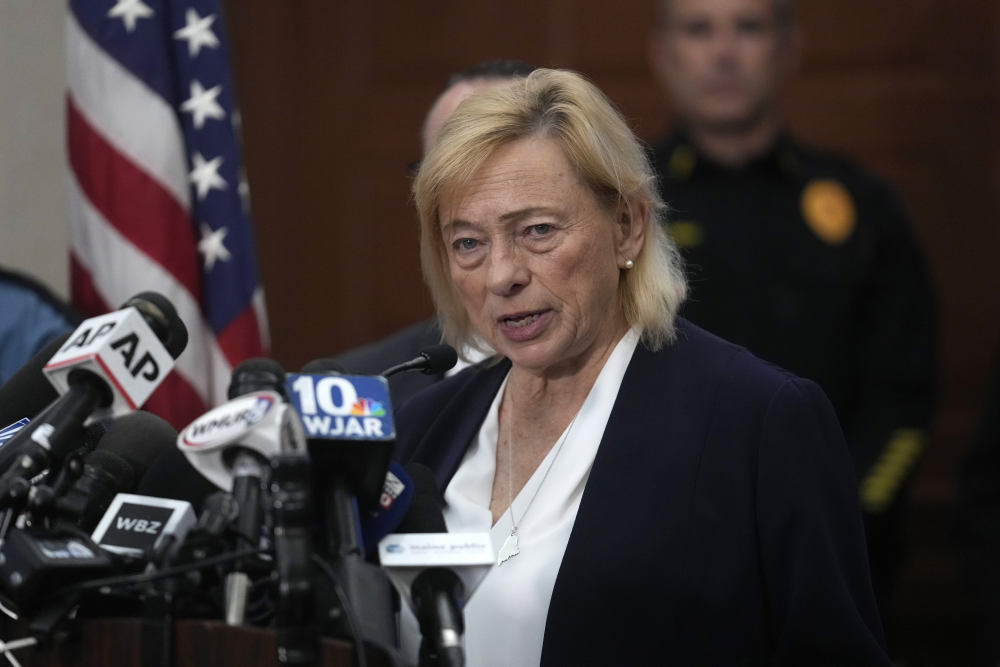 10月26日,美国缅因州州长珍妮特·米尔斯在刘易斯顿市出席新闻发布会。新华社/美联