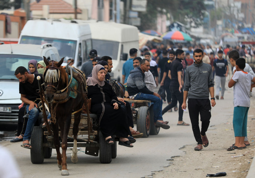 10月29日,因缺乏燃料,人们在加沙地带南部城市汗尤尼斯使用驴车出行。新华社发(亚西尔·库迪摄)