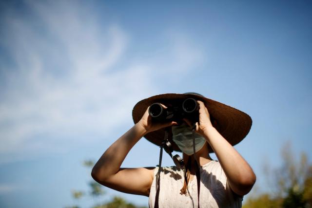 2020年7月26日,一名女子在美国首都华盛顿用望远镜观鸟。新华社发(沈霆摄)