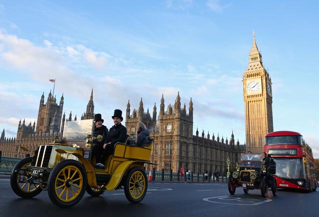 伦敦当日举办老爷车大赛,参赛者驾驶老爷车从伦敦出发,行驶至南部海滨城市布赖顿。