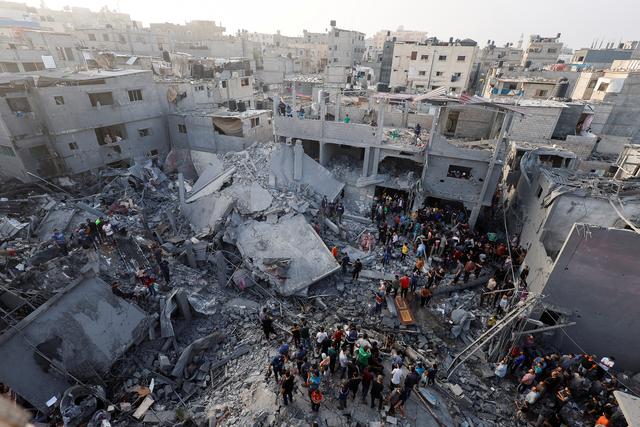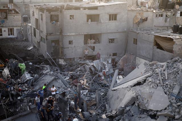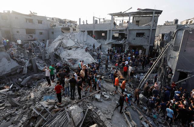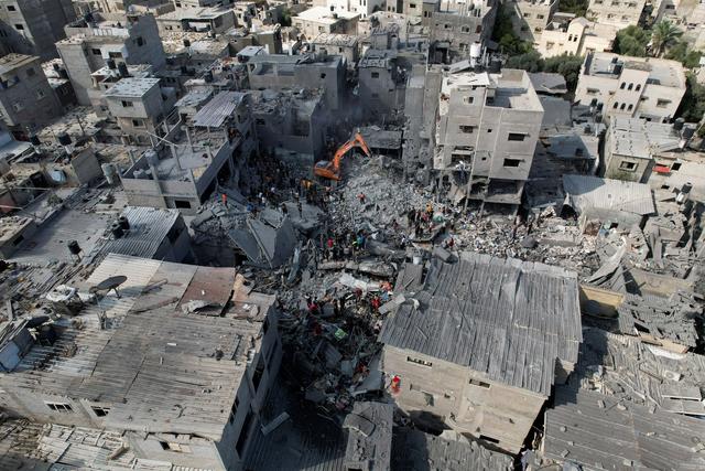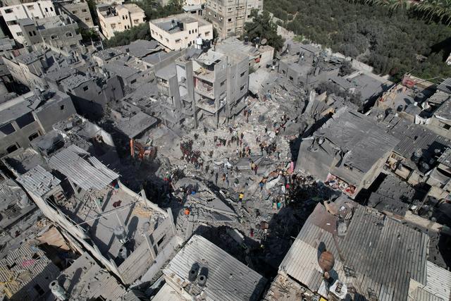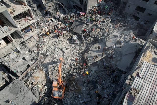 11月5日,在加沙地带中部的迈加齐难民营,人们在以军轰炸后的建筑废墟上搜救。新华社/路透