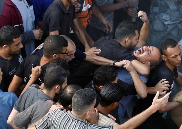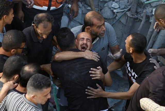 11月5日,在加沙地带中部遭受以军轰炸的迈加齐难民营,一名男子悲痛哭泣。新华社/路透