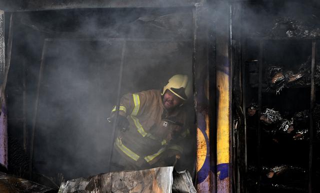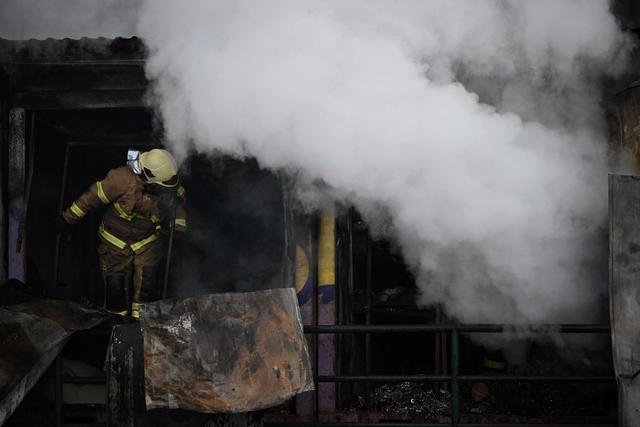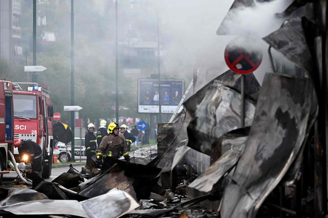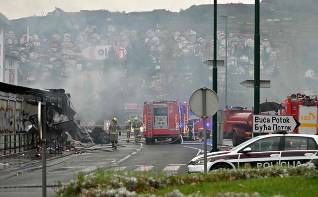 11月5日,消防员在波黑首都萨拉热窝的一家市场灭火。新华社/法新
