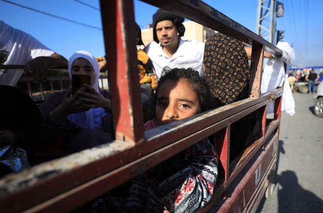 11月7日,在加沙地带中部地区,巴勒斯坦人向南部迁移。新华社发(亚西尔·库迪摄)