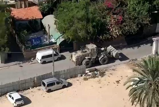 △以军驾驶装甲推土机进入约旦河西岸城市杰宁(图片来源:《圣城报》)