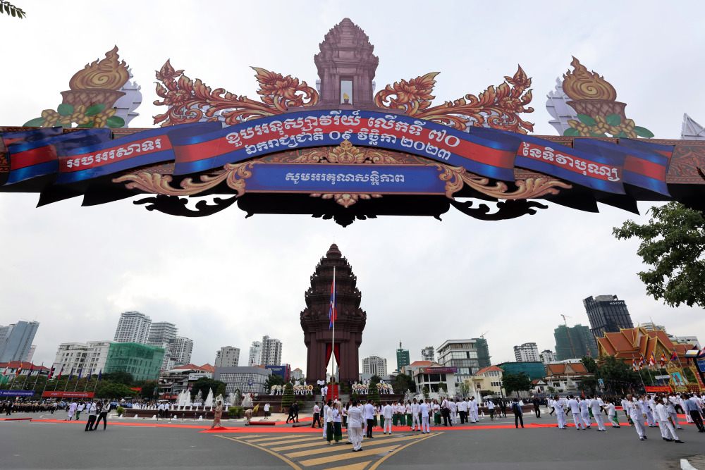11月9日,人们在柬埔寨首都金边参加独立日庆祝活动。新华社发(索万纳拉摄)