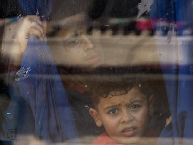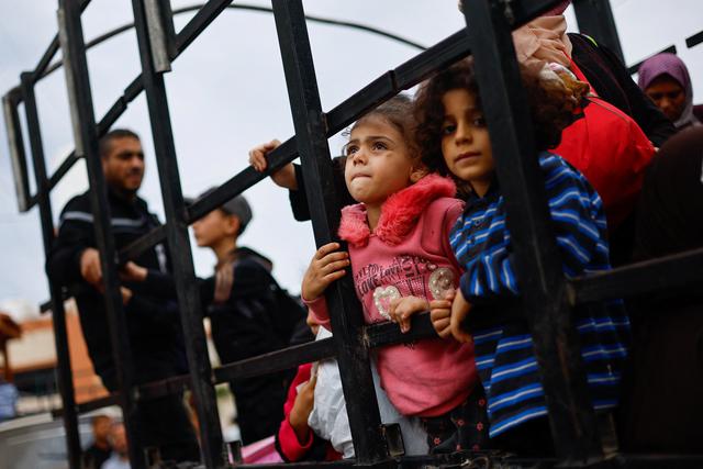 11月9日,在加沙地带中部地区,巴勒斯坦儿童向窗外张望。新华社/路透