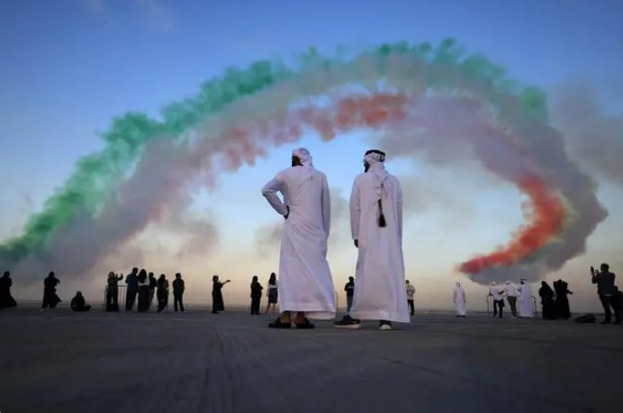 ▲11月14日,在阿联酋迪拜阿勒马克图姆机场,人们在停机坪观看飞行表演。图/新华社