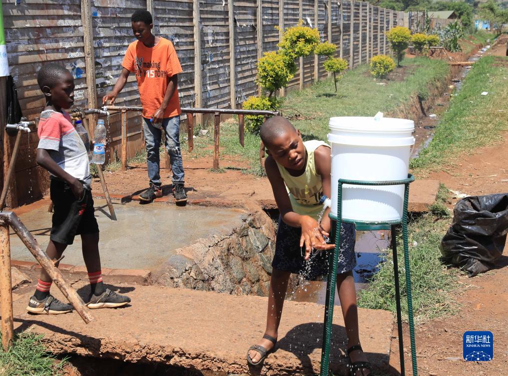 11月18日,在津巴布韦哈拉雷库瓦扎纳区一处诊所,一名男孩在洗手。