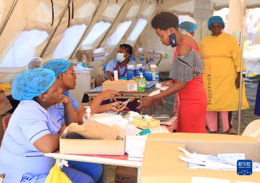 11月18日,在津巴布韦哈拉雷库瓦扎纳区一处诊所,医务人员指导患者就诊。