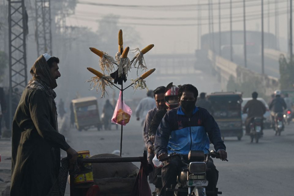 11月22日,在巴基斯坦拉合尔,人们在空气污染天气下出行。新华社/法新