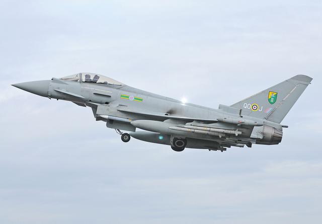 这张英国国防部2011年3月20日提供的照片显示,一架英国空军“台风”式战斗机从英国林肯郡一个空军基地起飞。新华社发(英国国防部照片)
