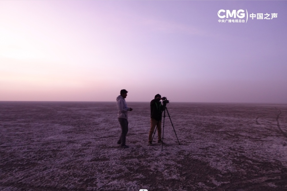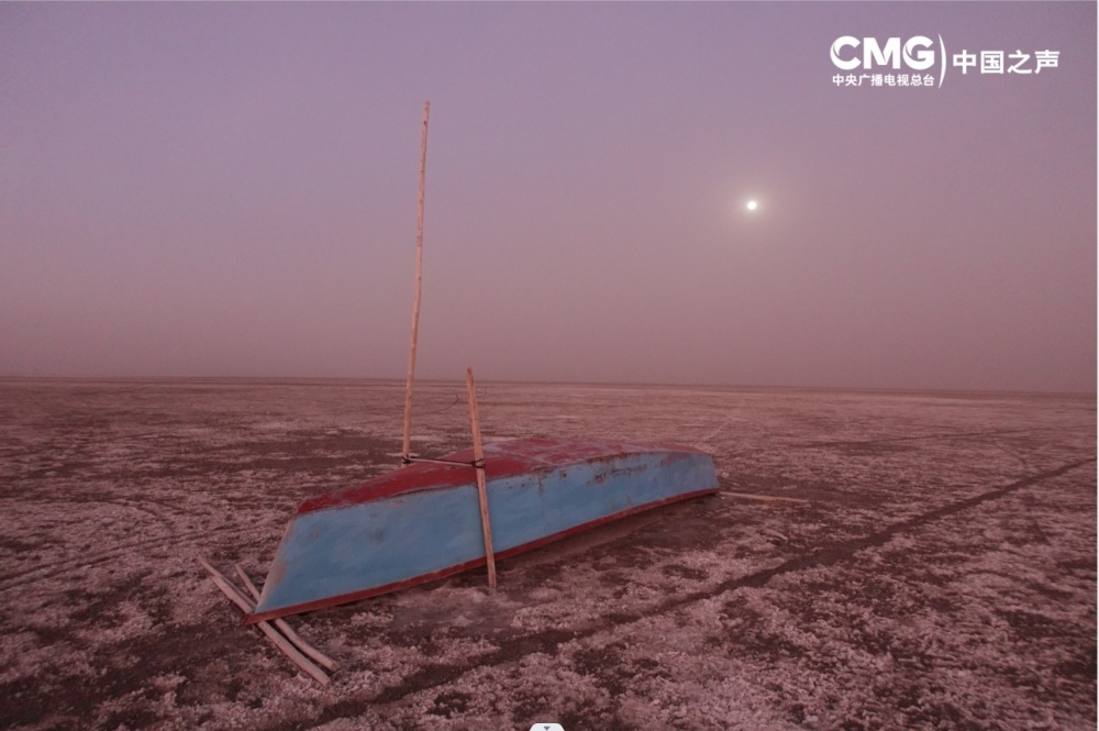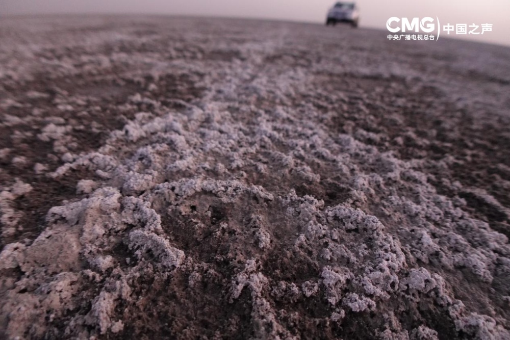 湖水干涸后露出的盐床(记者曹璇 摄)