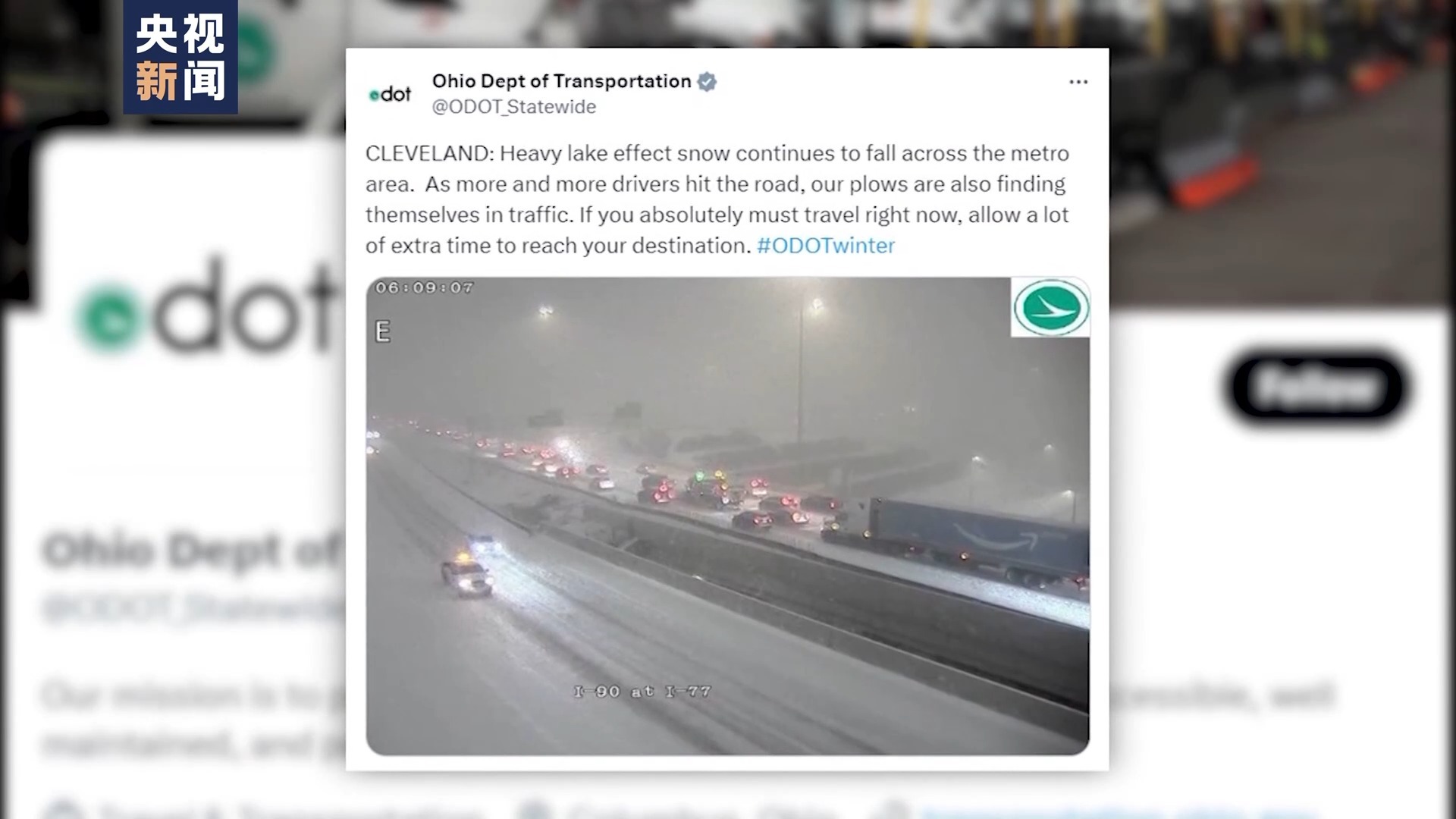 在俄亥俄州,交通部门在社交媒体上发布警告,称目前路上交通拥堵,即使是铲雪车也很难通行。此外,恶劣天气也在克利夫兰引发了多起交通事故,克利夫兰有100多所学校在28日当天宣布停课。