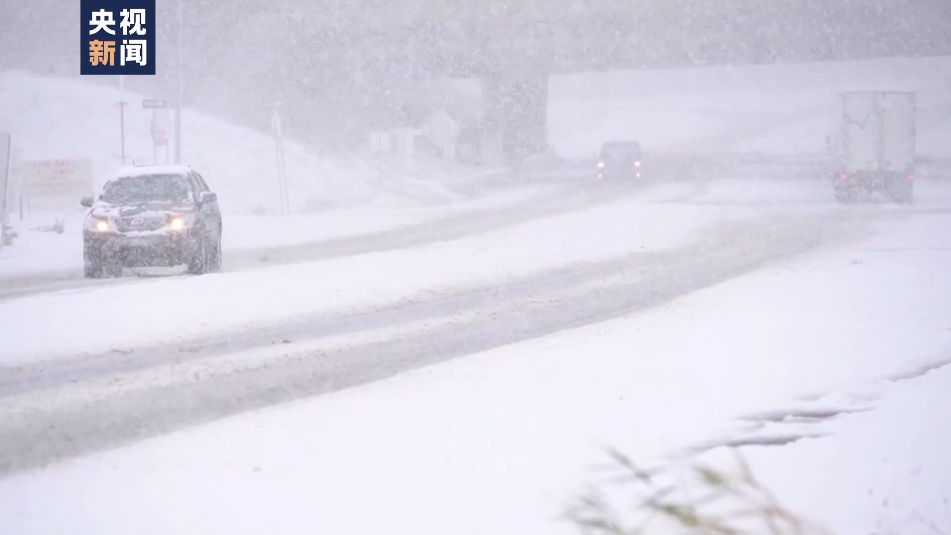 高速路上,强降雪天气给车辆驾驶带来安全隐患。