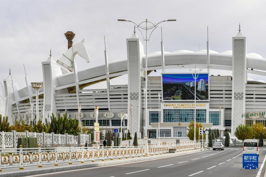 这是11月25日在土库曼斯坦首都阿什哈巴德拍摄的奥林匹克体育场。