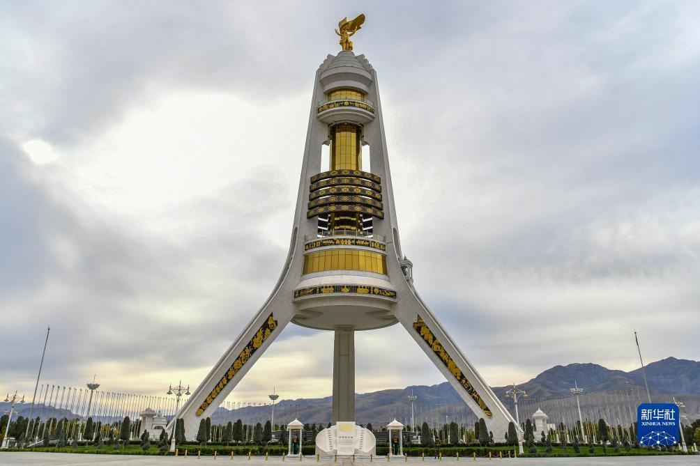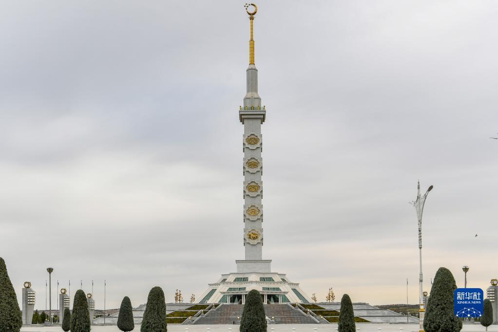 这是11月26日在土库曼斯坦首都阿什哈巴德拍摄的宪法柱。